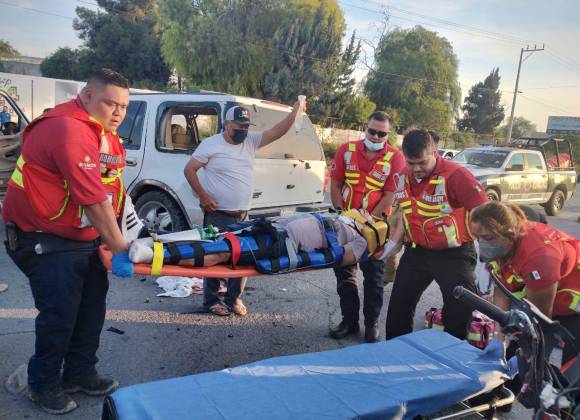 Un joven matrimonio resultó grave de salud al estrellar la moto en la que viajaba contra una camioneta que presuntamente les quitó derecho de paso, en el bulevar Plan de Guadalupe, frente a Plaza Bella, en Ramos Arizpe.