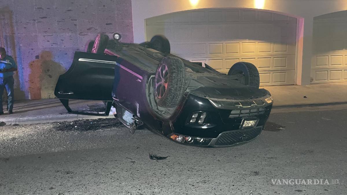 Cuatro jóvenes de nacionalidad surcoreana sufrieron un impactante choque con volcadura mientras circulaban en el fraccionamiento residencial Los Pinos.