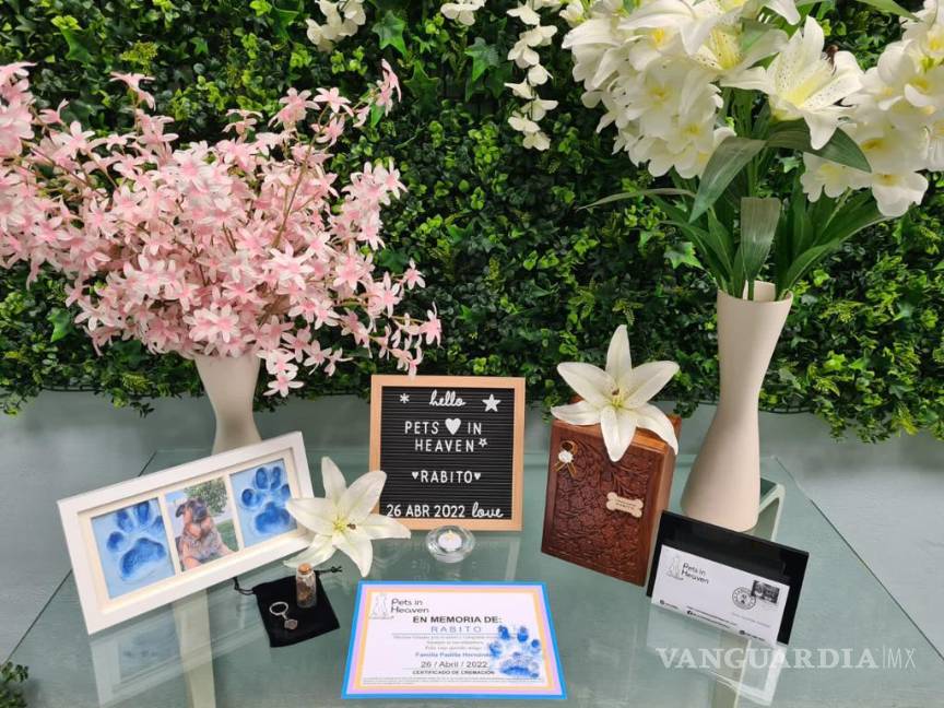 Pets In Heaven cuenta con tres paquetes: Cremación Individual, cremación comunitaria y cremación presencial. En el caso de Rabito, Sofía recibió un altar con un par de huellas marcadas en yeso, una plaquita de madera, un mechón de pelo, un relicario con unos tres gramos de cenizas y un obituario virtual que se publica cada jueves en Facebook.