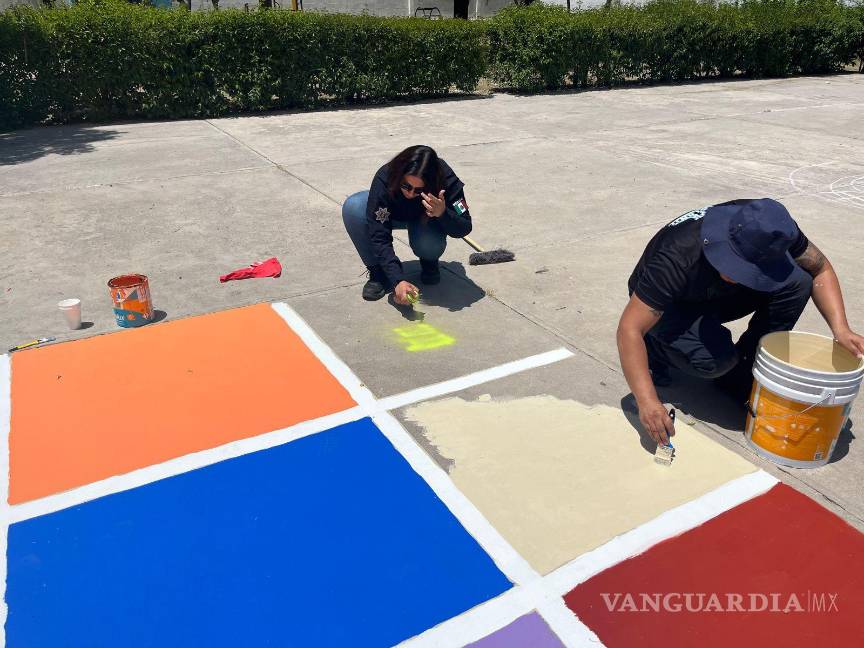Héroes sin capa: policías de Saltillo ayudan a reparar escuela vandalizada en pleno regreso a clases