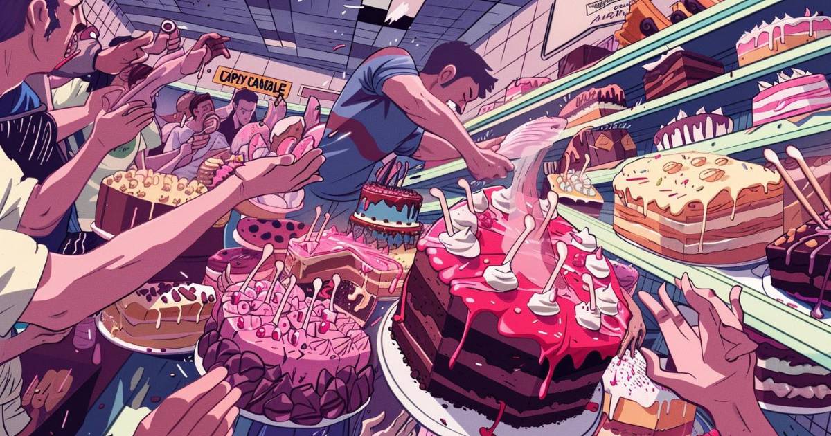Al día siguiente intentas nuevamente, pero fallas otra vez. Ya es 10 de mayo, es tu última oportunidad. Decidido, llegas a las nueve de la mañana, antes de que la tienda abra, pero te topas con una larga fila y cuando finalmente abren las puertas, corres hacia los estantes de postres, pero te quedas sin pastel.