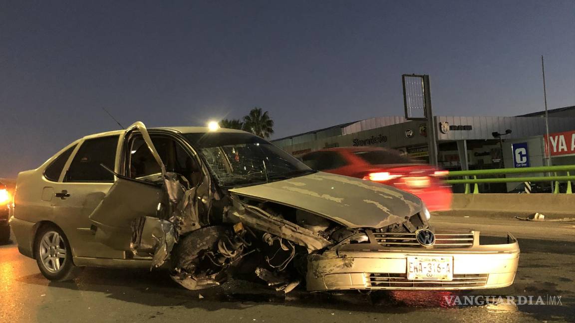 Tras el impacto con la base, que sirve como señalamiento, el lado derecho del auto quedó destrozado y el vehículo salió proyectado hacia el costado izquierdo dando un giro sobre su propio eje y quedando atravesado en dos carriles.