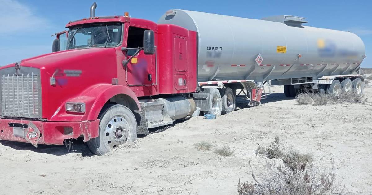 También identificaron en la zona marcas de llantas de vehículos pesados y al inspeccionar un camino de terracería, localizaron un tractocamión acoplado a un semirremolque cargado con 55 mil litros de aparente hidrocarburo, en estado de abandono.