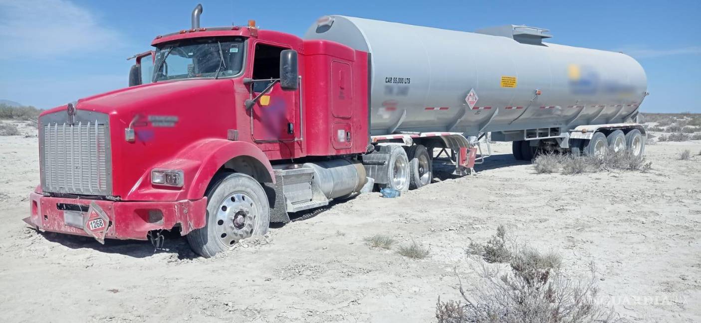 PARRAS DE LA FUENTE, COAH.- En Coahuila, elementos de la Guardia Nacional localizaron una toma clandestina y aseguraron un tractocamión con 55 mil litros de combustible.