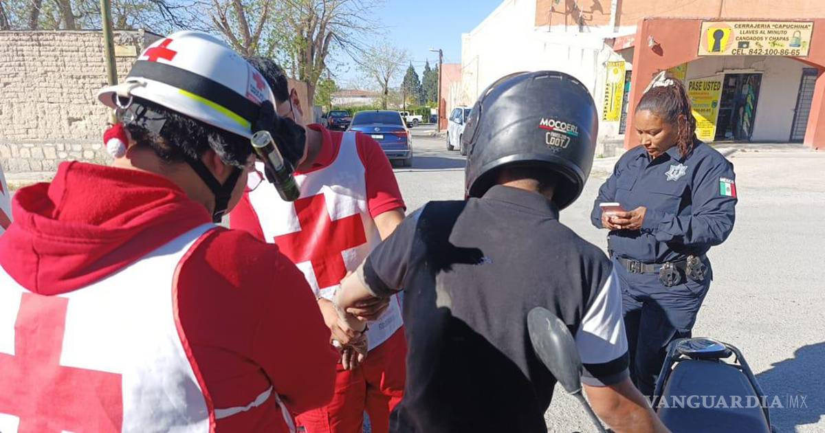 Un joven motociclista resultó lesionado luego de sufrir una caída cuando circulaba por calles de Parras, presuntamente tras ser impactado por un vehículo cuyo conductor se dio a la fuga.