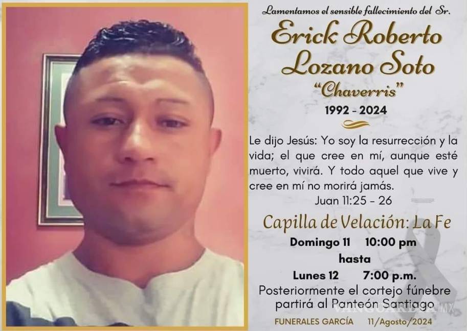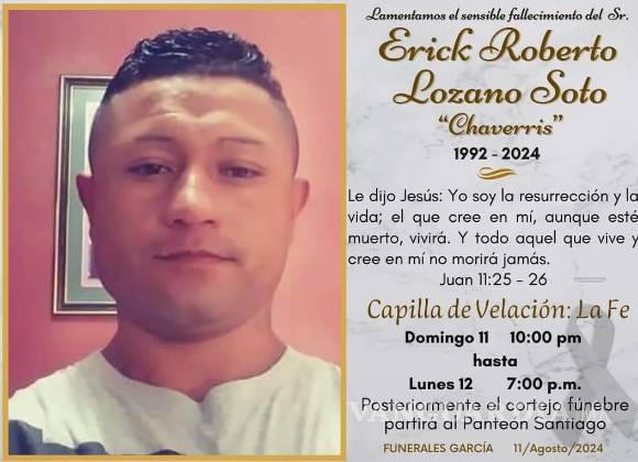 El velorio se llevó a cabo durante la noche del domingo en la localidad de Sabinas. Este lunes, a las 19:00 horas, se realizó el cortejo fúnebre, que partió hacia el Panteón Santiago, donde Eric Roberto fue sepultado.