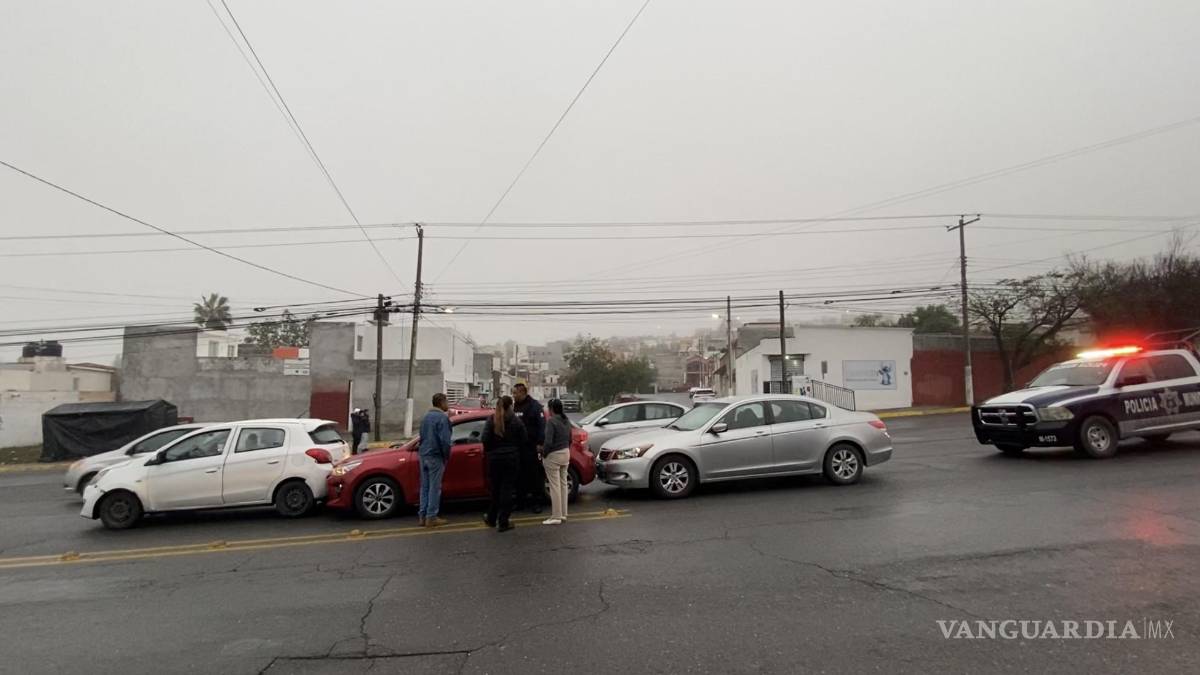 En la mañana de este lunes, se registró un accidente múltiple en las calles de la colonia Magisterio Sur de Saltillo, debido a la falta de precaución al volante por parte de los participantes y a las condiciones climatológicas adversas.