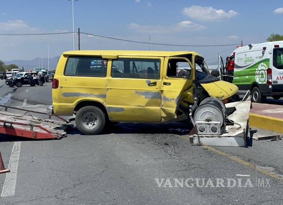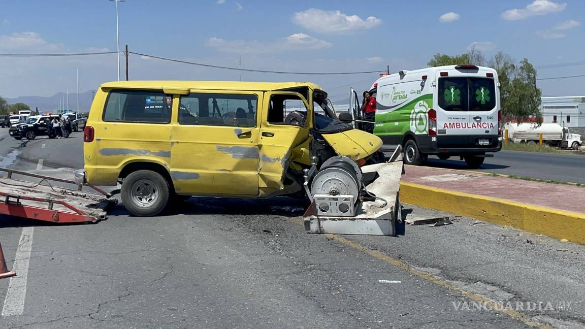 Contra una pipa de gas, la cual sufrió daños y provocó una fuga de combustible, se estampó una Van por alcance en la carretera 57, antes de llegar a las instalaciones de Ciudad Universitaria de la Universidad Autónoma de Coahuila.