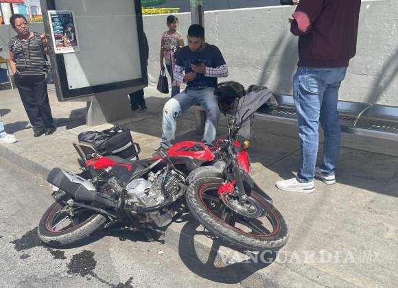 Imprudente conductor derriba a motociclista en la Zona Centro de Saltillo