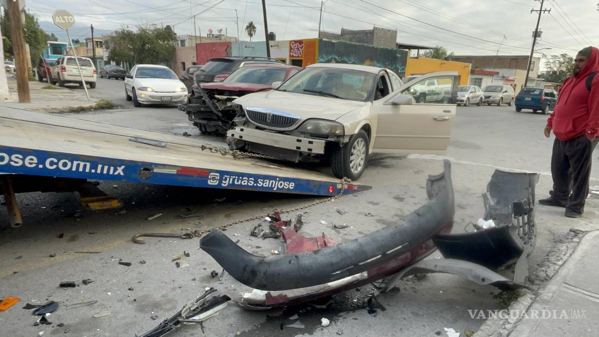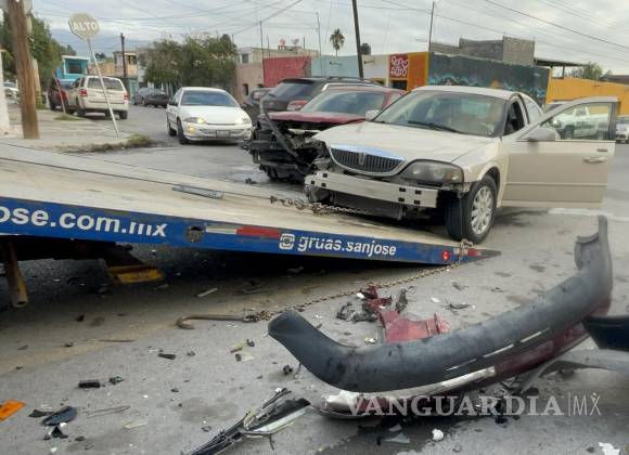 Personal de Tránsito Municipal llegó para tomar conocimiento del siniestro y abanderó la zona por algunos minutos hasta que llegó la grúa para llevarse los autos a un corralón de Saltillo.