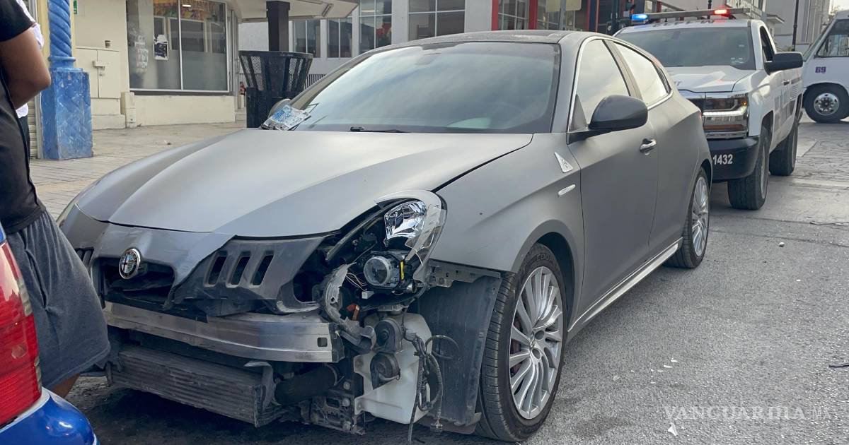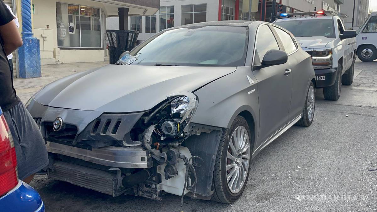 Imprudente joven se le atraviesa a un lujoso Alfa Romeo, en la Zona Centro de Saltillo