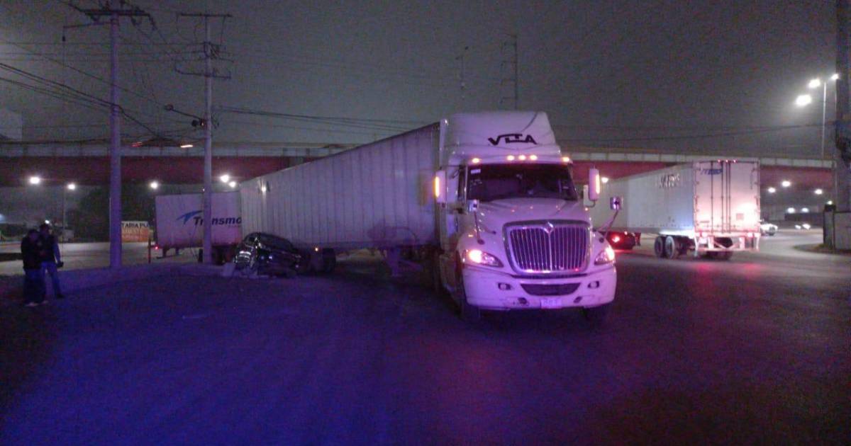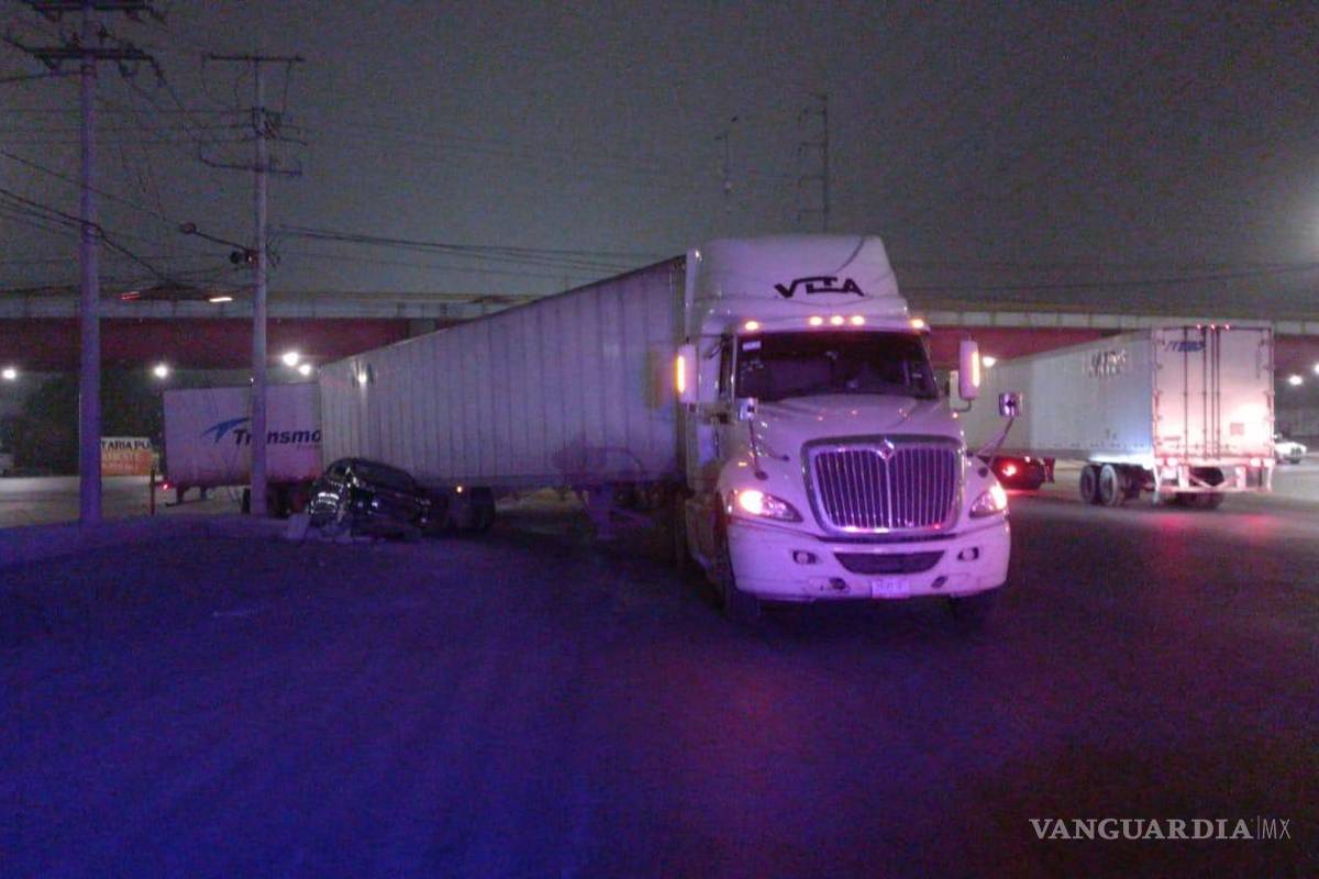 Imprudente trailero se le atraviesa a auto y lo impacta, en Ramos Arizpe