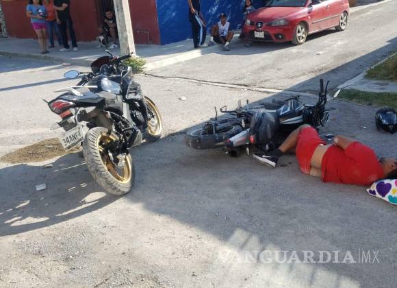 Imprudentes motociclistas colisionan en colonia Independencia de Parras