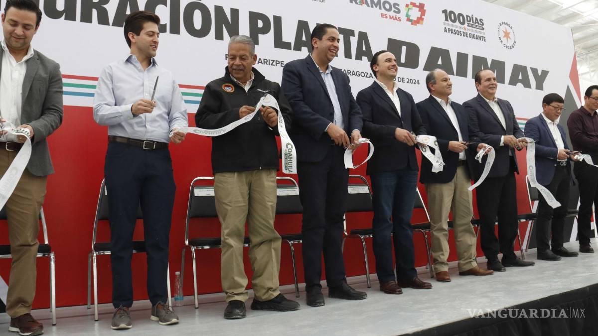 El gobernador Manolo Jiménez, Daniel Aguilar, director de Operaciones de Daimay, y Caiye Quiu, directivo de Daimay Automotive Interior, pusieron en marcha los trabajos de construcción y cortaron el listón inaugural de la Planta 5, donde producirán cabeceras y descansa-brazos para todos los vehículos eléctricos que se producen en Norteamérica, para General Motors, Stellantis, Ford, BMW, Subaru, Toyota, Honda y Tesla.