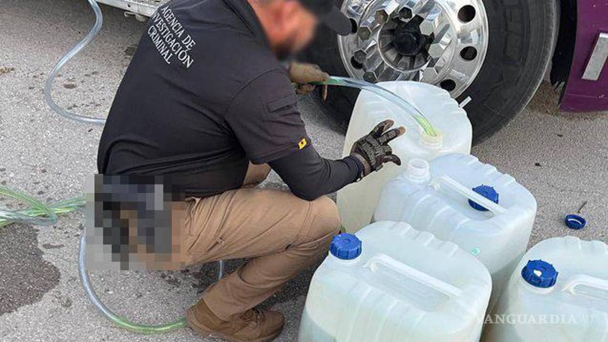 Al revisar el vehículo, los agentes localizaron cinco bidones con capacidad de 50 litros cada uno, ocultos entre la carga, los cuales contenían una sustancia líquida con características similares a la heroína líquida, sumando un total aproximado de 250 litros. El conductor, de 35 años, fue asegurado en el lugar.