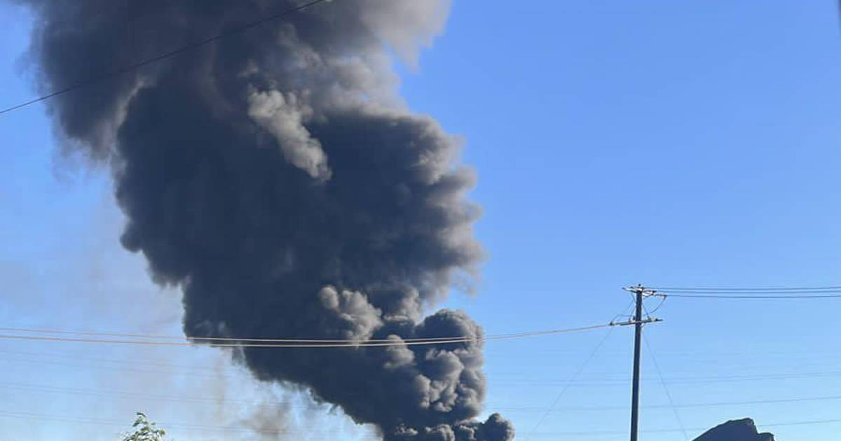 Delincuentes, que fueron sorprendidos por el personal de vigilancia en áreas de confinamiento de residuos de la Planta Uno de Altos Hornos de México, en su huida, provocaron un incendio en un depósito temporal de neumáticos en desuso, lo que ha generado abundante humo negro.