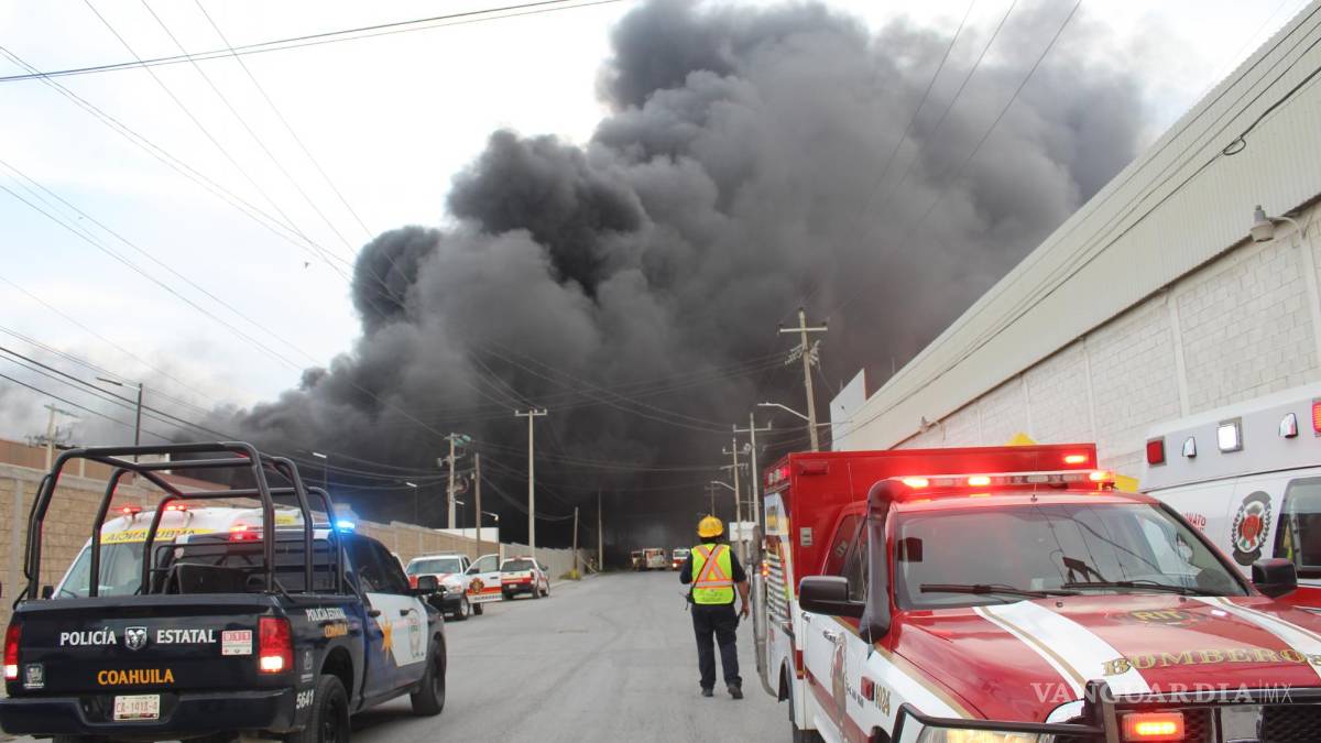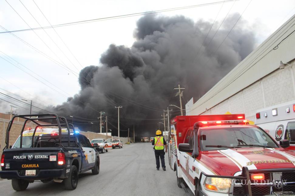 La columna de humo negro generada por el siniestro alcanzó alturas superiores a los 50 metros, las cuales fueron visibles desde distintos puntos de la capital de Coahuila. Al lugar acudieron un total de cuatro camiones bomba y un camión escala, apoyados por cuatro cisternas de agua. Las labores se complicaron y fue necesaria la instalación de un módulo de emergencia en la calle Torre Eiffel, dentro del mismo parque industrial.
