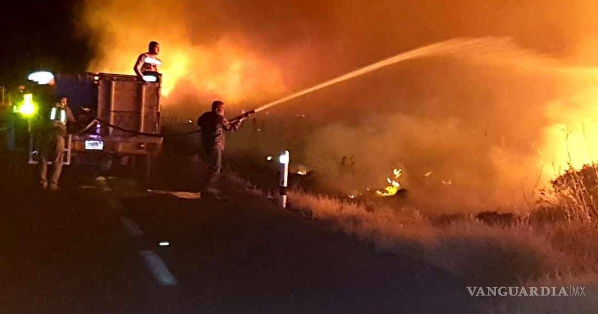 La noche del jueves 24 de marzo, cerca de las 20:30 horas se recibió el reporte de un incendio por la carretera federal 30 que conecta al Pueblo Mágico de Cuatro Ciénegas con el municipio de San Pedro, en un predio colindante con la Poza Azul.