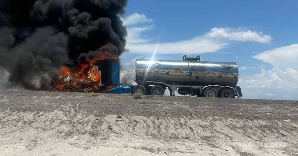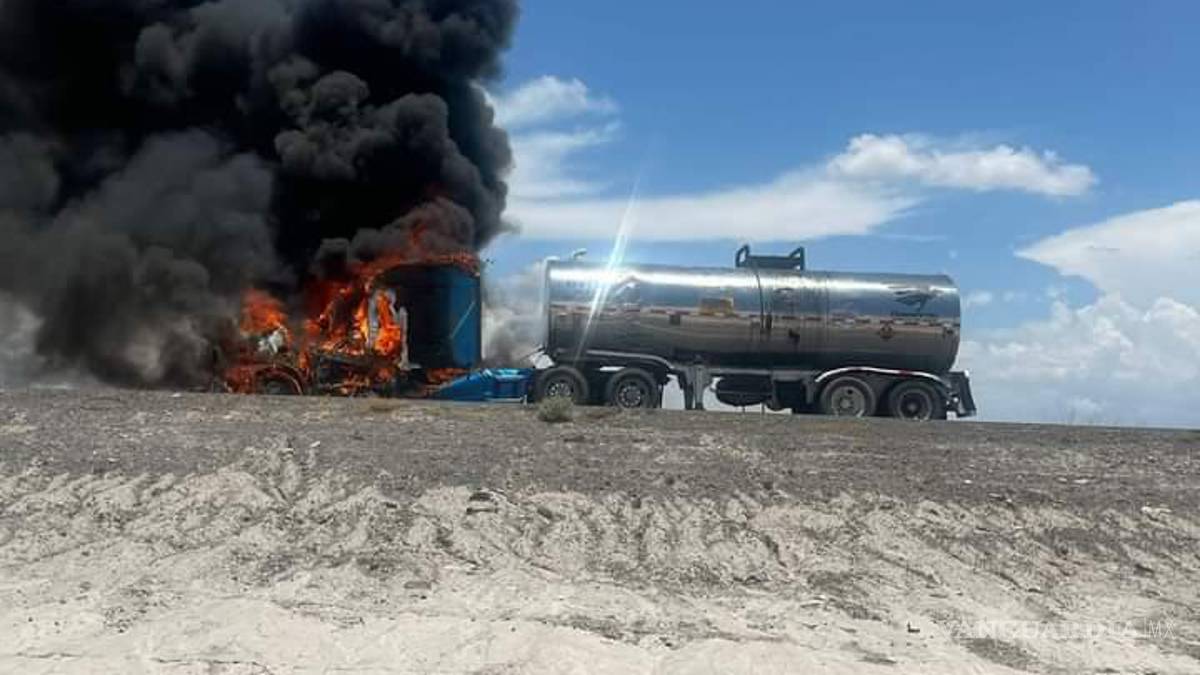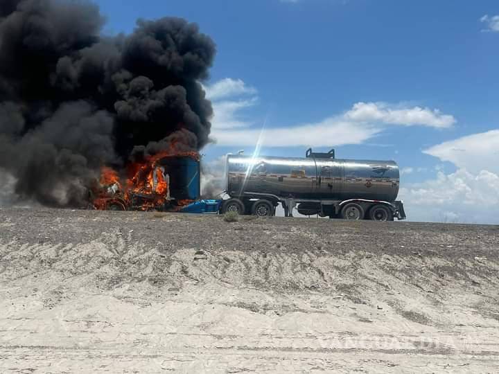 Incendio de pipa en carretera Saltillo-Torreón causa movilización de Bomberos y Guardia Nacional