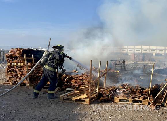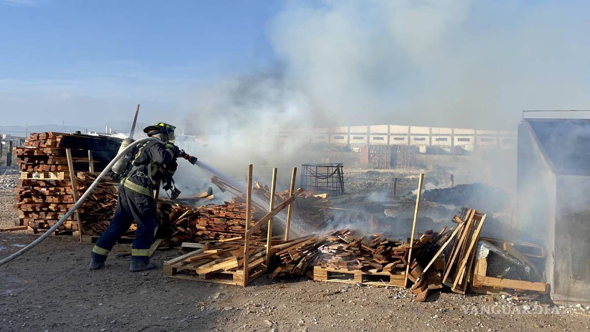 Una bodega en Ramos Arizpe donde se fabrican tarimas, así como algunas de las que se encontraban fuera de la nave industrial, quedó reducida a cenizas tras registrarse un incendio la mañana de este martes.