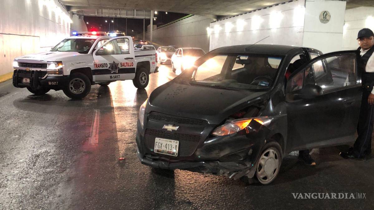 Un motociclista terminó derribado por un conductor, cuando este último le quitó el paso tras impactarse contra una ballena vehicular sobre el Periférico Luis Echeverría Álvarez, al oriente de Saltillo.