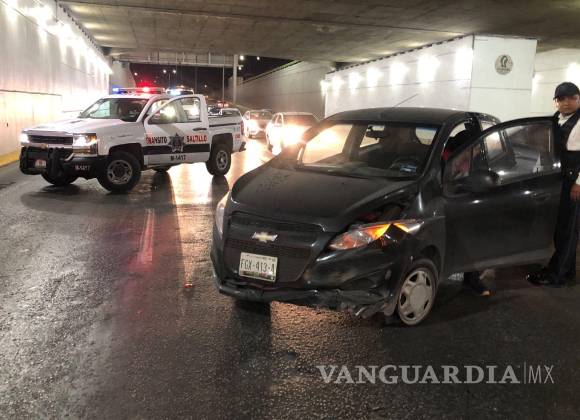 Inexperto conductor pierde control de su auto y derriba a motociclista, al oriente de Saltillo