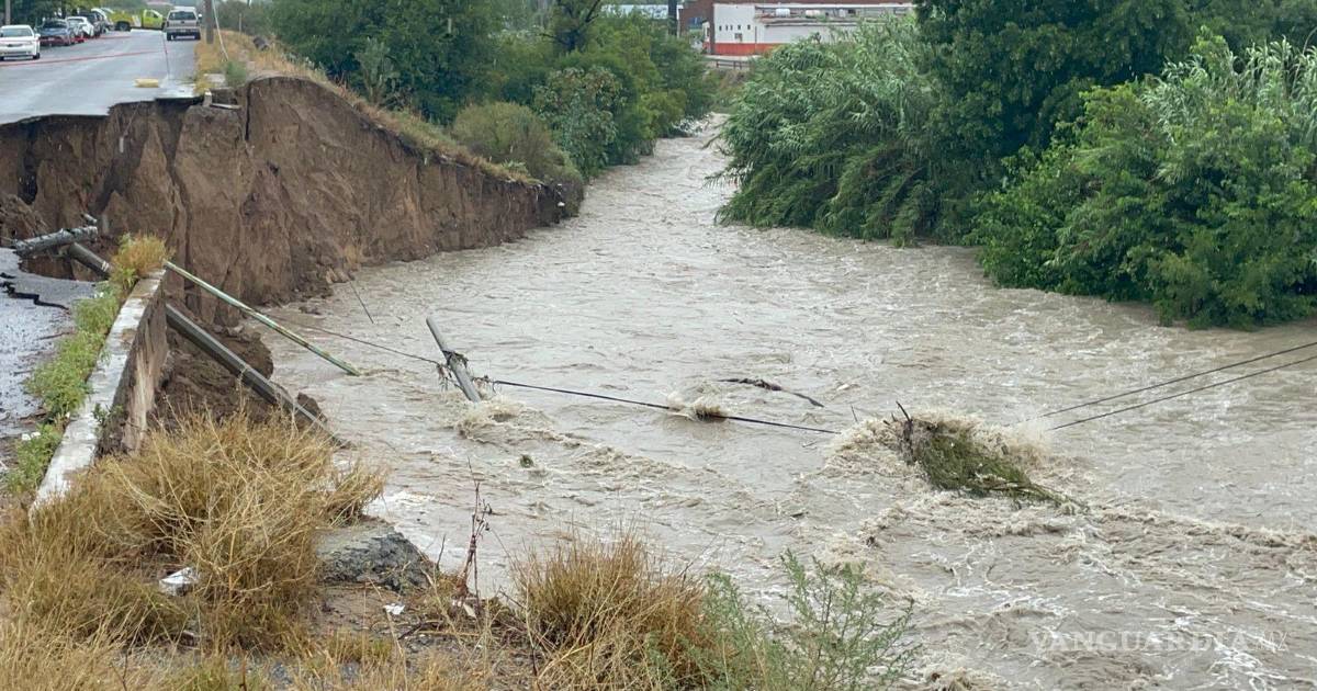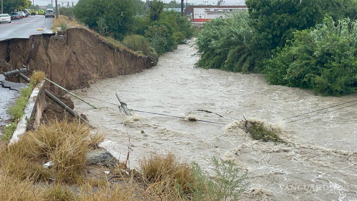 Debido a las constantes lluvias y al aumento del caudal del arroyo Ceballos, se originó un deslave en el bulevar José Musa de León, al norte de Saltillo, específicamente en la calle Benecio López Padilla, en Los Pinos IV Sector.
