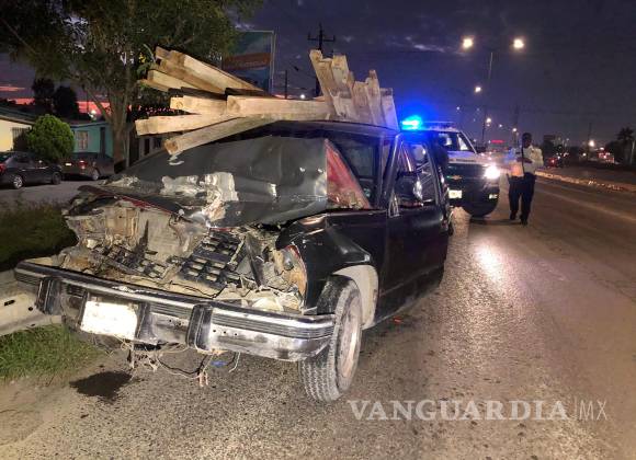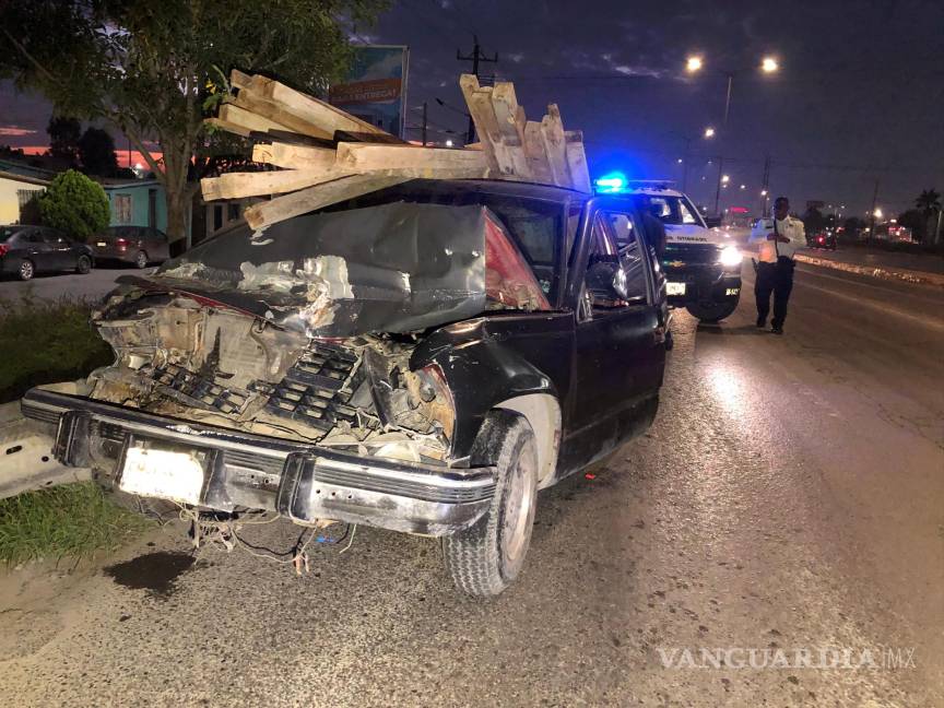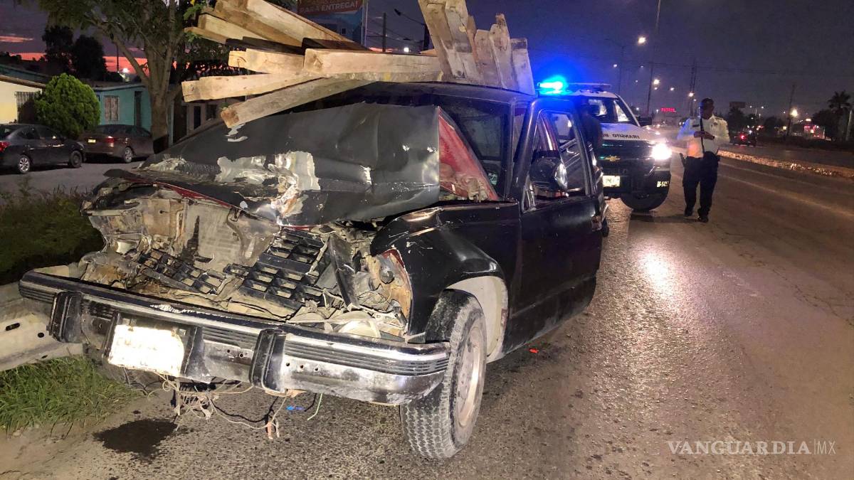 Joven ebrio choca contra tráiler estacionado y destroza su camioneta, al poniente de Saltillo