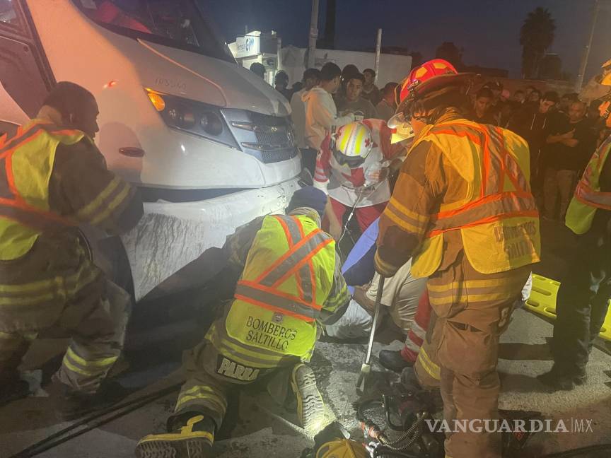 Luis Antonio Mendoza Pérez, un joven de 18 años, resultó con una posible fractura en la pierna izquierda después de ser impactado por un camión de transporte de personal en la colonia Saltillo 2000.