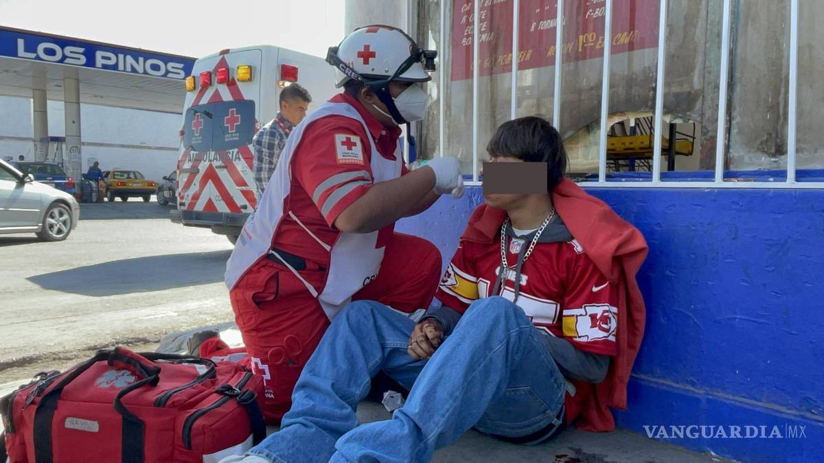 Un joven motociclista, Axel Uriel de 16 años, resultó herido después de que intentara ganarle el paso a una ruta de transporte urbano en el cruce de Emilio Carranza y Lerdo de Tejada, en la Zona centro de Saltillo.