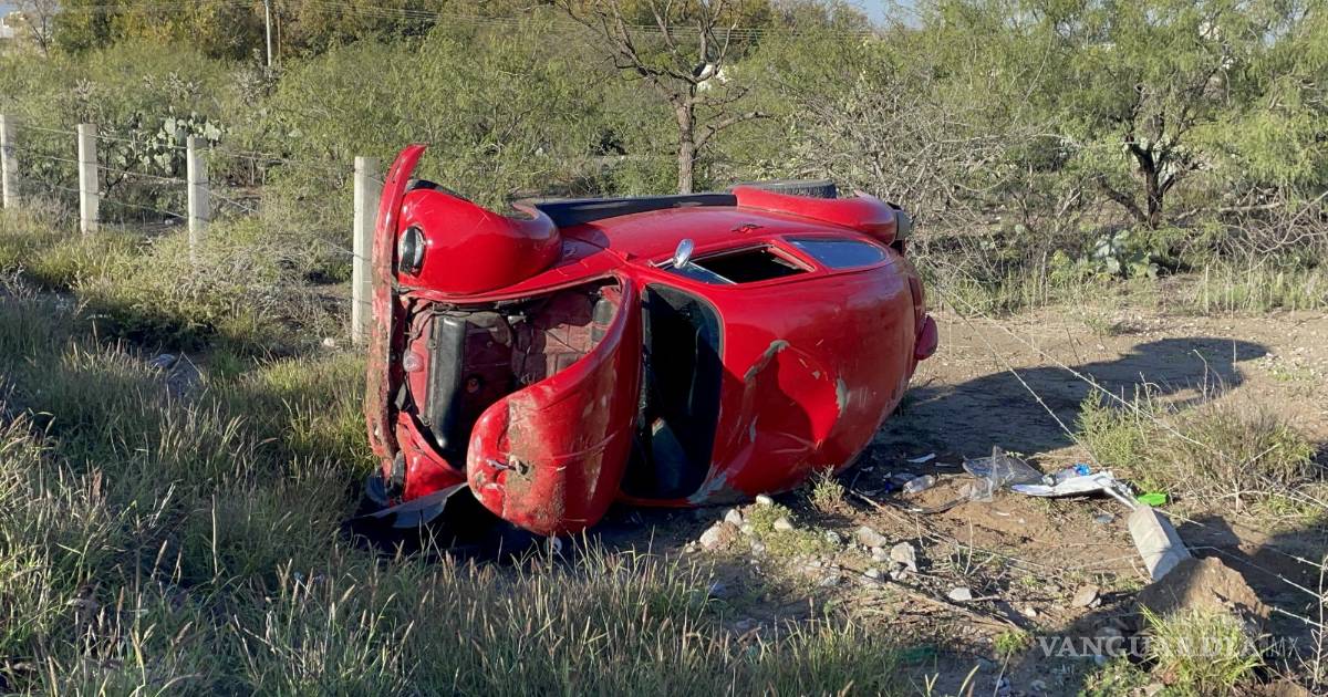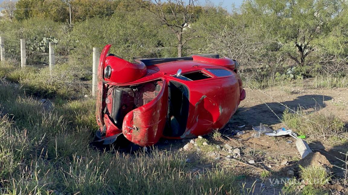 Joven pierde control de su auto y termina con su ‘escarabajo’ volcado, al norte de Saltillo