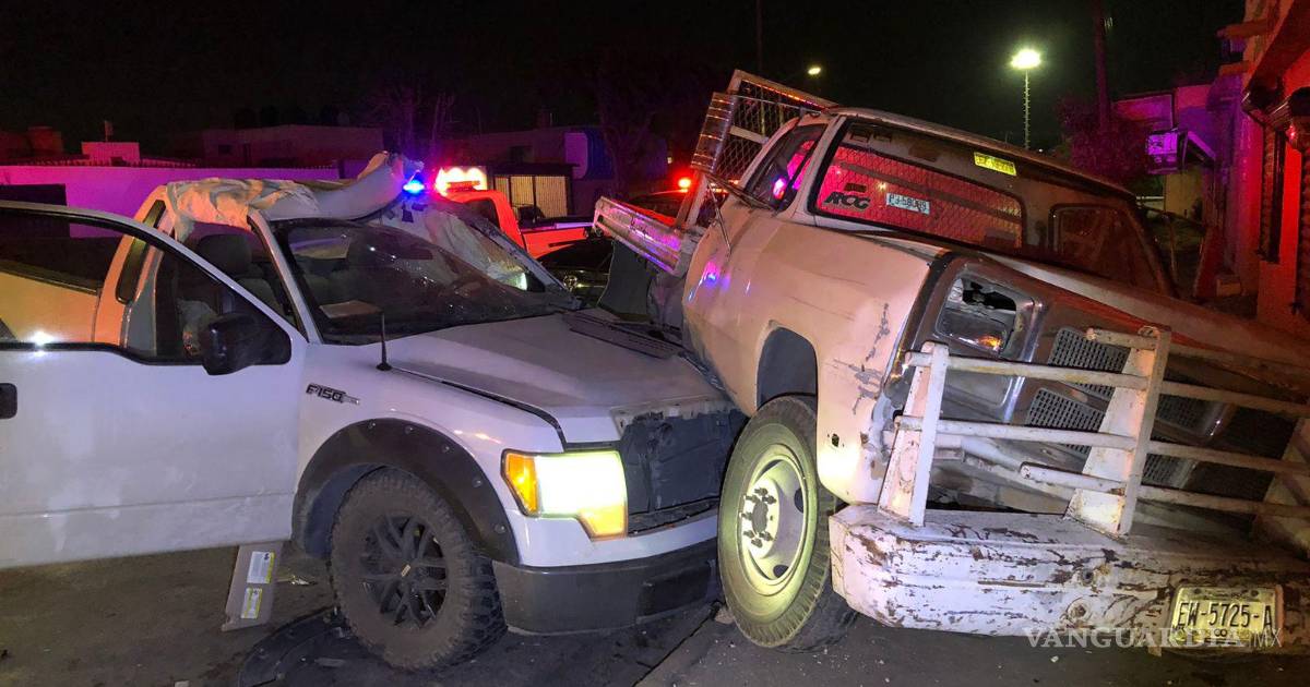 El conductor de una camioneta Ford F-150 se salvó milagrosamente al colisionar contra un camión de plataforma, que estaba estacionado afuera de un negocio de refacciones al norte de Saltillo.
