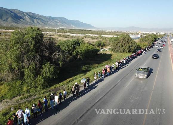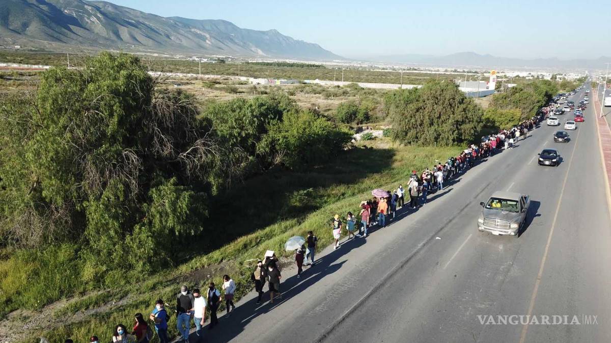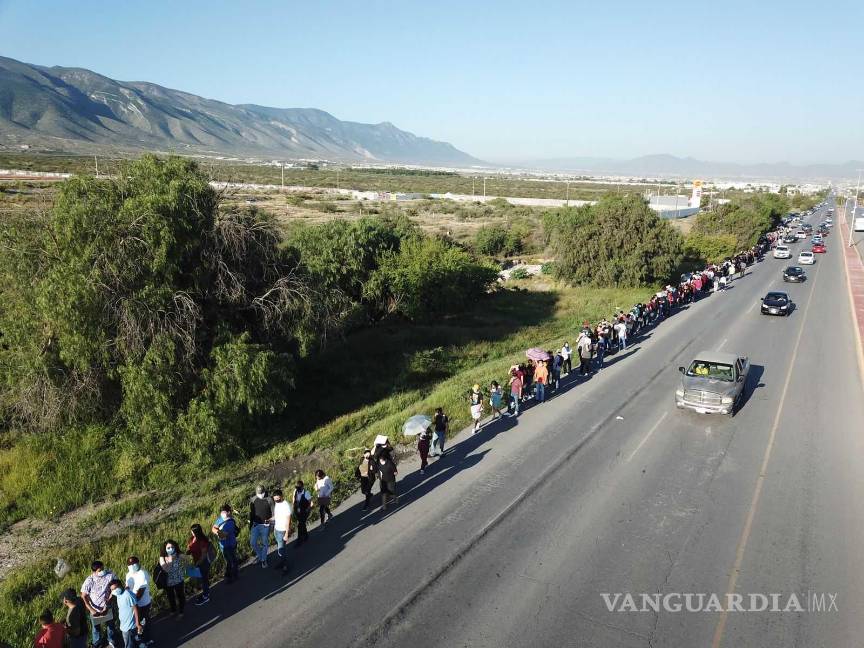 Desde muy temprana hora se registraron largas filas de espera en el punto de vacunación vehicular que está instalado en la Universidad Autónoma de Coahuila Campus Arteaga.