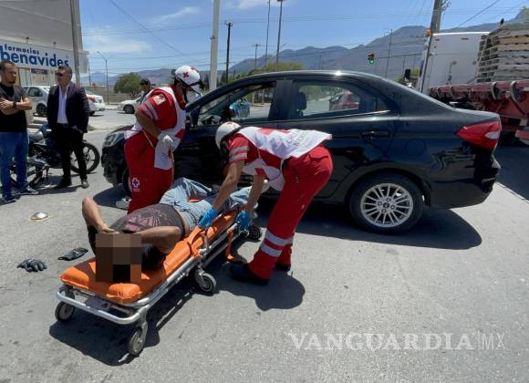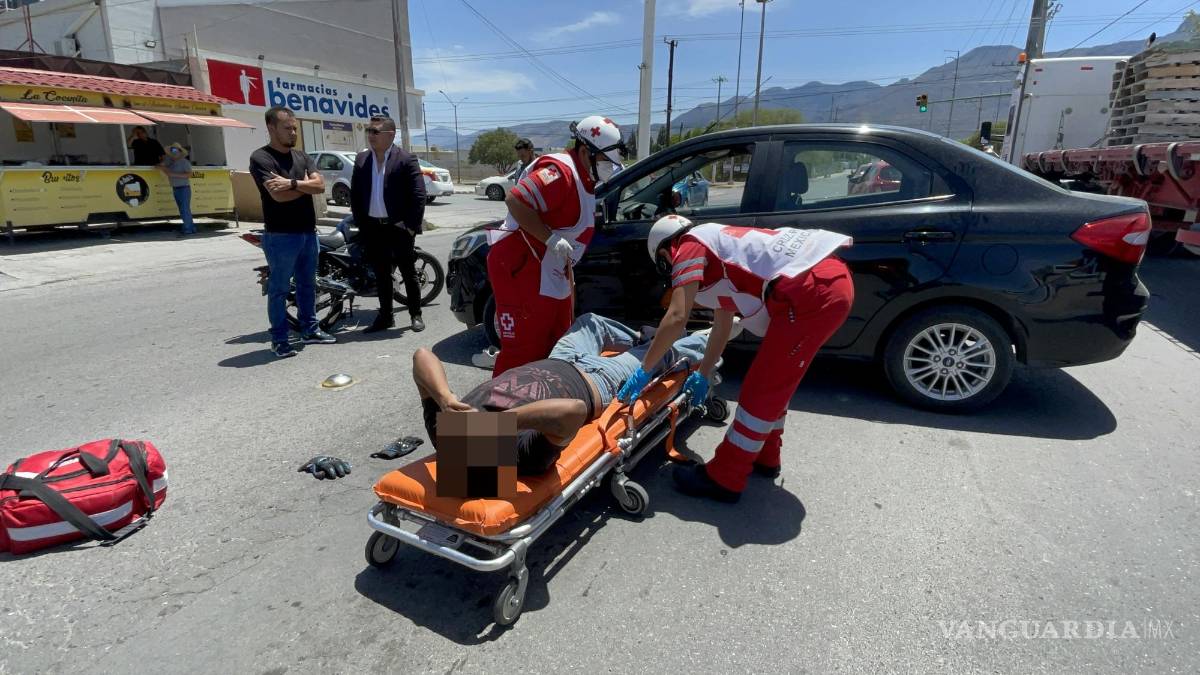 Se atendió a Edwin Alejandro Andrade Lucio, de 30 años, quien circulaba a bordo de la motocicleta Italika sobre la avenida 20 y pasó Francisco de Urdiñola con dirección al bulevar Antonio Cárdenas, pero salió de una gasolinera un auto.