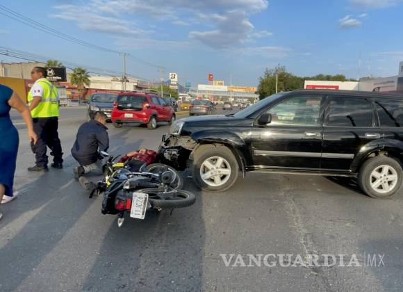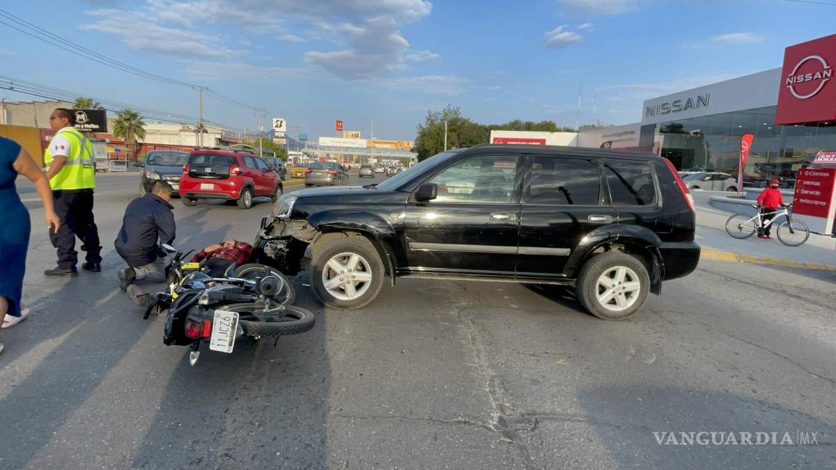 ¡Le salió caro el café! Conductora se le atraviesa a motociclista y lo arrolla, al sur de Saltillo