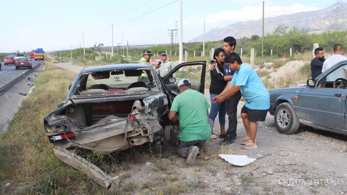 Con una crisis de nervios terminó un joven que se dirigía al Parque Industrial Derramadero, luego de sufrir un aparatoso accidente vial en la carretera federal a Zacatecas.