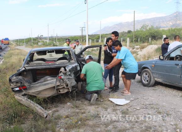 Le truena la llanta, choca contra tráiler y vuelca, en Saltillo