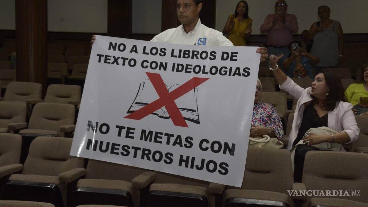 Además, dijo, se lanzó una convocatoria a nivel nacional, pero en Coahuila no fue promovida. En reiteradas ocasiones fue interrumpida con gritos de “¡pero que no diga mentiras!”, “¡Que se lleve los libros a su casa!”, “¡Que se vaya a Cuba”, “¡Trae los libros!”, “¡Traidores a la patria!”.