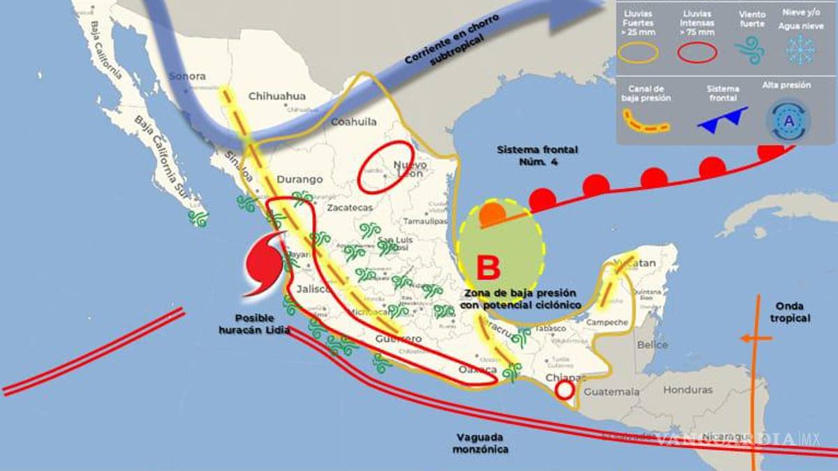 ‘Lidia’ sí pegará a Coahuila; pronostican fuertes lluvias para las regiones Laguna y Sureste