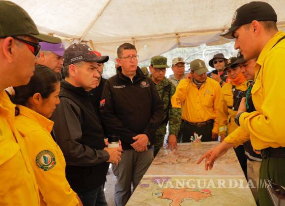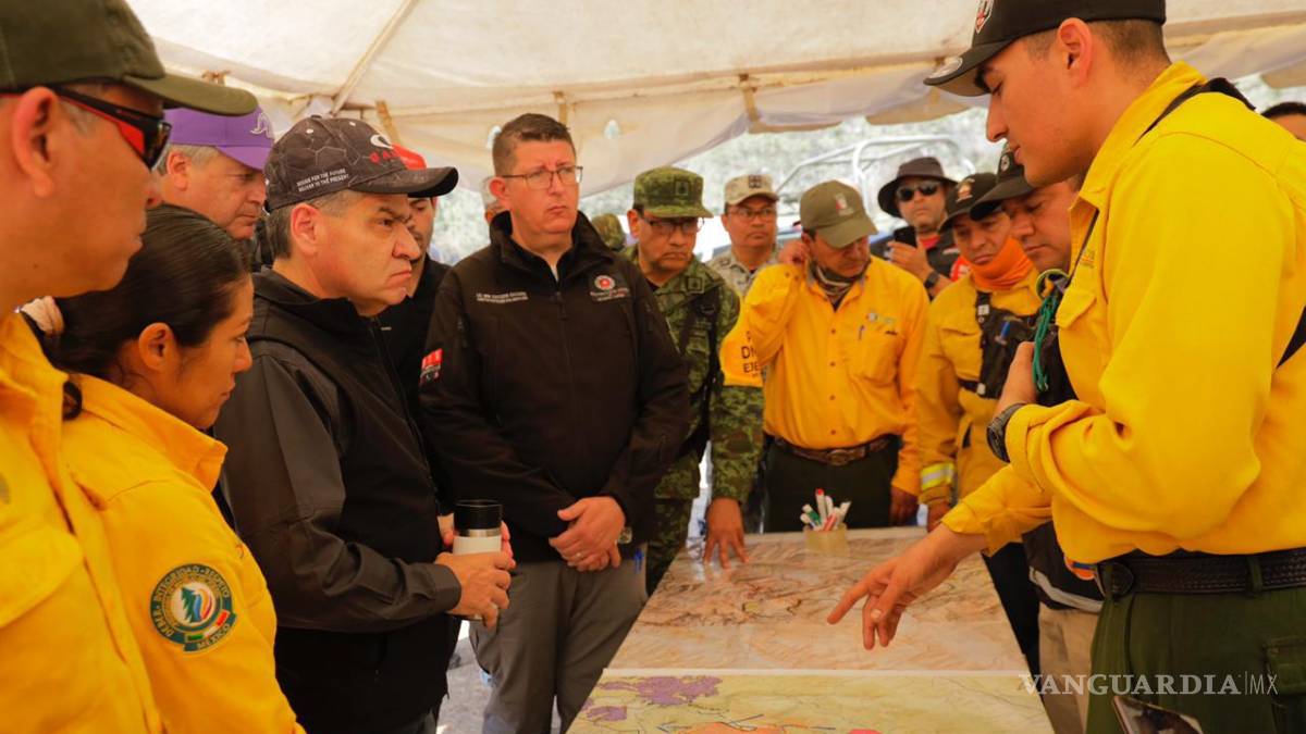 Llega gobernador de Coahuila a la zona del incendio en NL; reportan más de 2 mil hectáreas afectadas