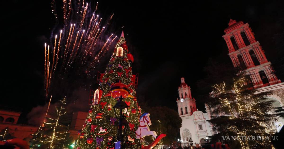 Miles de saltillenses se dieron cita en la Plaza de Armas Saltillo para ver el encendido de VillaMagia.