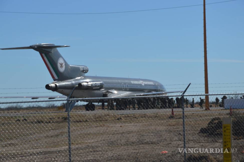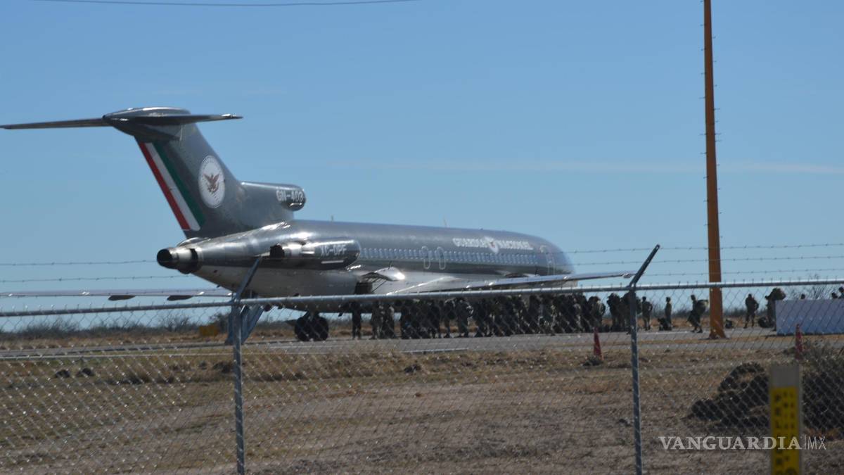 En el aeropuerto internacional “Eulalio Gutiérrez”, ubicado en el municipio de Nava, se observó la llegada de un avión Boeing de la Guardia Nacional con el relevo de al menos 200 elementos de esta dependencia como parte de una rotación normal que se lleva en diferentes puntos del País.