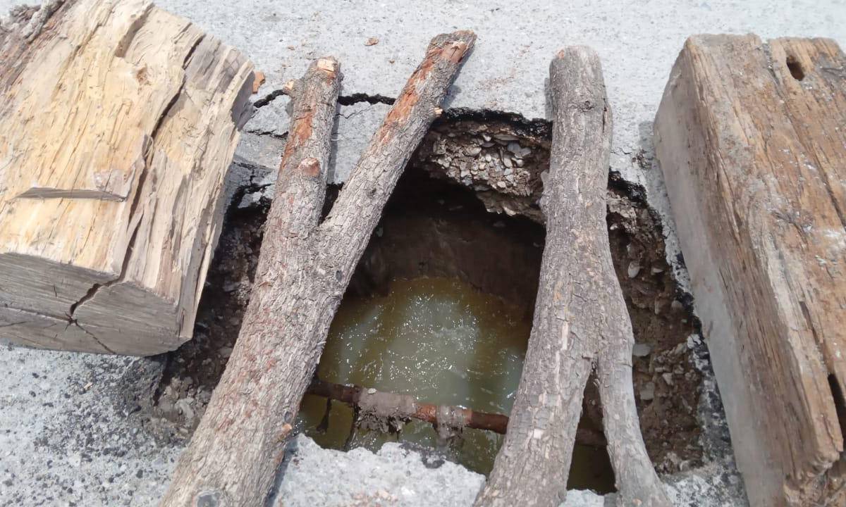 Como medida de prevención, vecinos decidieron colocar grandes troncos de madera sobre el área dañada para evitar nuevos accidentes, mientras esperan que el Sistema Municipal de Aguas y Saneamiento (Simas) atienda a la brevedad la fuga de aguas negras que, además de comprometer la estructura de la vialidad, genera olores fétidos que afectan la calidad de vida en la zona.