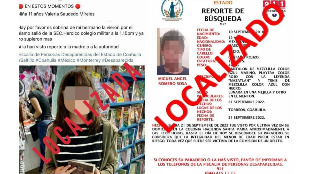 Localizan a niña de Saltillo y a niño de Torreón reportados desaparecidos; fue ausencia voluntaria