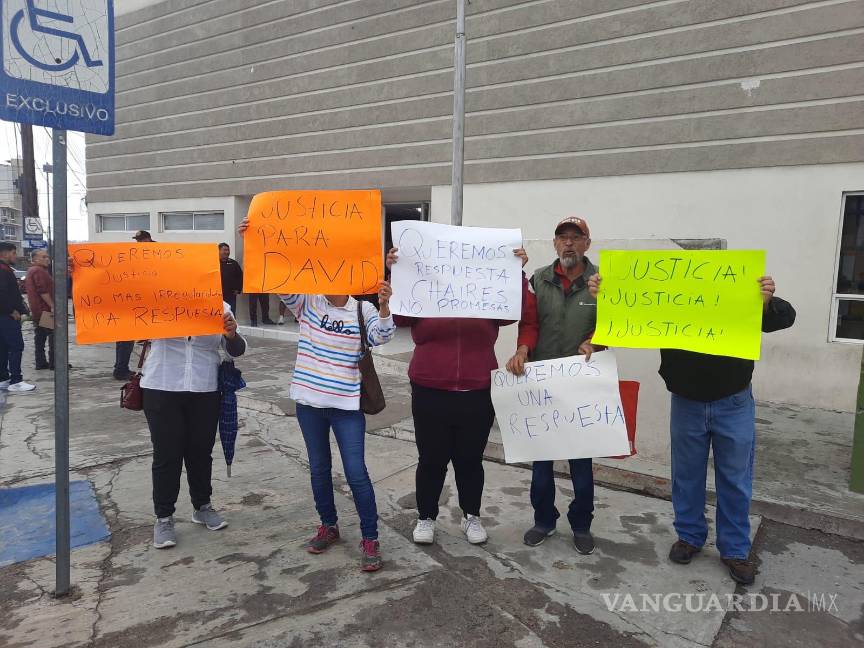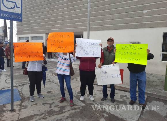 MONCLOVA, COAH.- Con pancartas en mano, madres de familia de internos del anexo Sanareh se manifestaron en la Fiscalía General del Estado, (FGEC) de la Región Centro, exigiendo justicia por la muerte de David.
