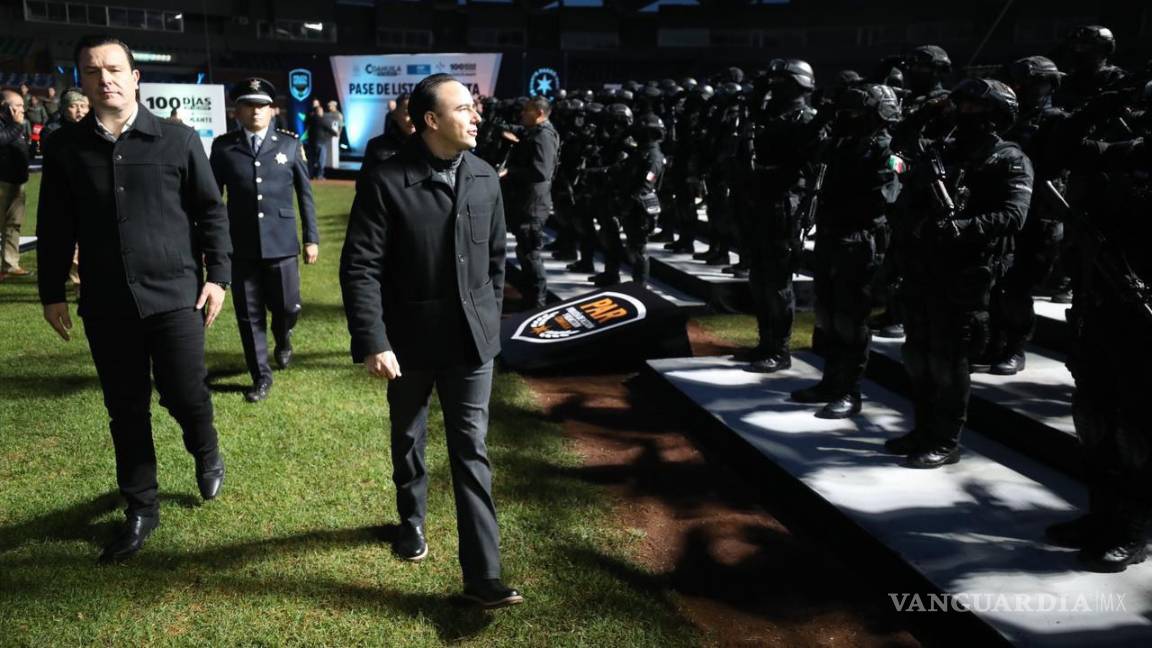 Durante el pase de lista y revista realizado en el Parque Francisco I. Madero a oficiales de diversos agrupamientos de seguridad de las cinco regiones del estado, el Gobernador informó que vienen muchas cosas buenas para los hombres y mujeres que han hecho de Coahuila uno de los estados más seguros del país, lo que incluye la entrega de uniformes, equipos tácticos y 150 patrullas, incluyendo blindadas.