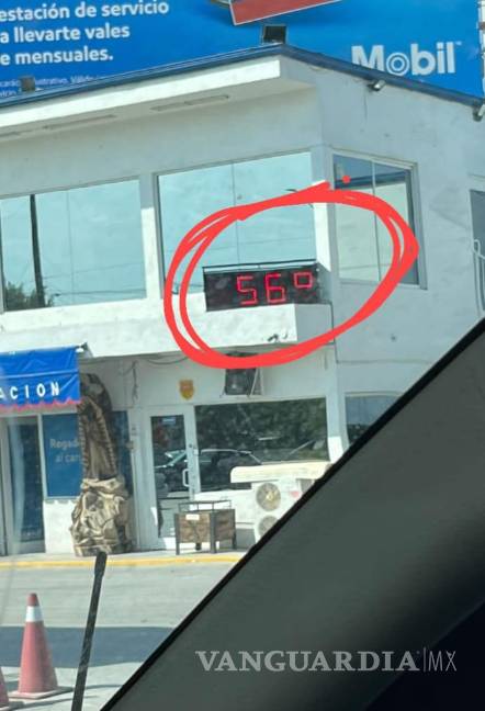 Este martes, el usuario Manuel Duran Flores publicó en su cuenta de Facebook una fotografía que presuntamente fue tomada en el Ejido 8 de enero, que se ubica en el municipio de Francisco I. Madero y ahí aparece un termómetro digital ubicado en el exterior de una gasolinera y marca una temperatura de 56 grados centígrados.