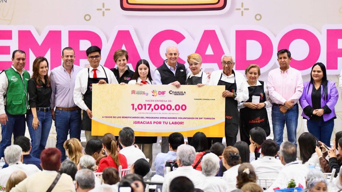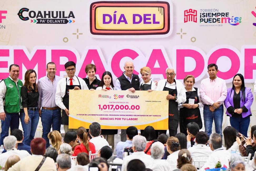El evento fue encabezado por el alcalde Román Alberto Cepeda González y por Selina Bremer de Cepeda, presidenta honoraria del DIF Torreón, quienes realizaron la entrega simbólica de un cheque por un millón 17 mil pesos destinado a los beneficiarios, además de kits de apoyo que incluyen mandiles, calcetas diabéticas y despensas.