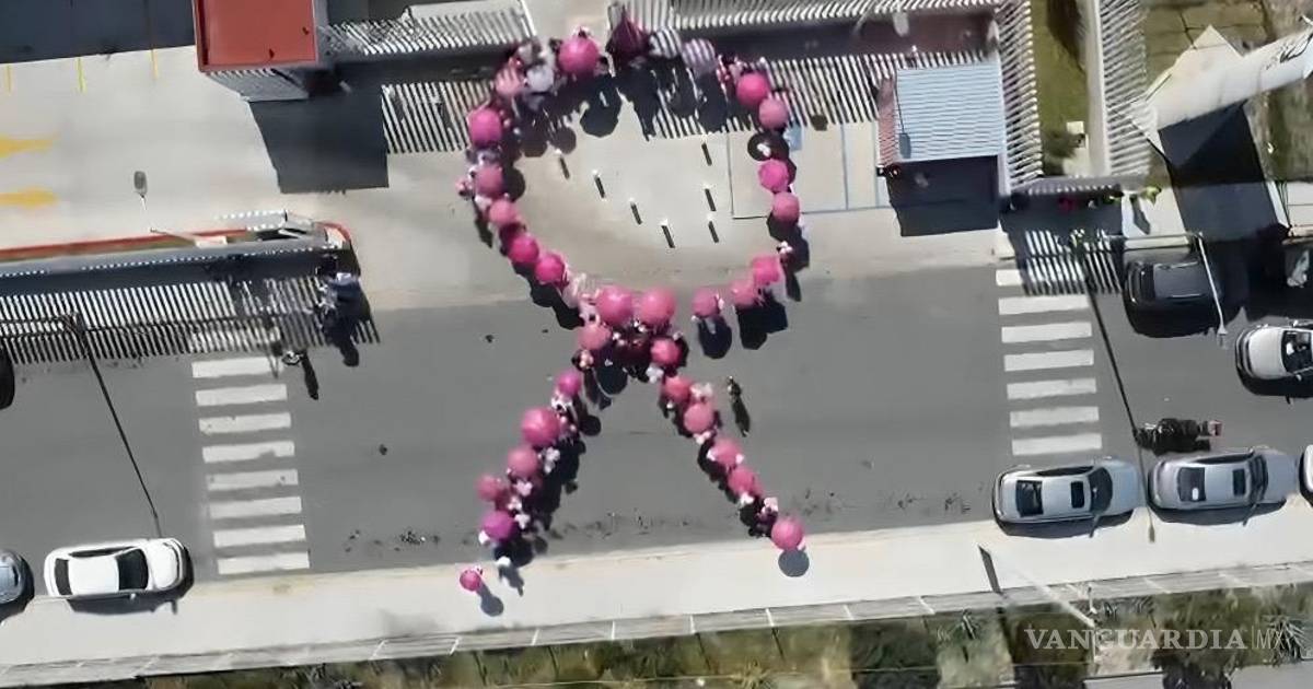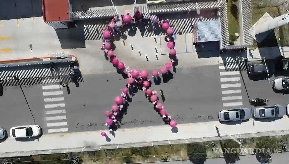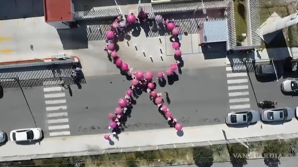 Médicos, enfermeras y voluntarios forman gigantesco lazo rosa en Saltillo en honor a la lucha contra el cáncer de mama