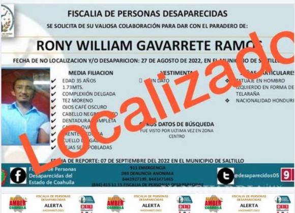 Se encuentran en Honduras, en donde se les entrevistó por medios digitales para cerciorarse su paradero y bienestar, agregó y agradeció de antemano a los usuarios que apoyaron en la difusión de la ficha de búsqueda.